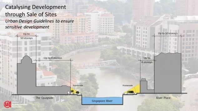与此同时,在新建建筑与历史建筑的协调上需要制定一系列导则。URA规定临近水岸的滨水建筑较高只能有4层,再远一点可以建10层,这使得各个区域的建筑都可以看到滨水的风景。同时,对屋顶的形状也会有一些规定,新建房屋的屋顶必须是陶土材质的,才能与周边的历史房屋融为和谐的整体。