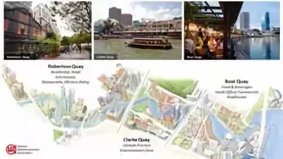 新加坡河长3 km,大致分为3个部分,每个部分被赋予了不同的功能和发展目标。驳船码头(Boat Quay)最靠近CBD,主要发展商务办公和餐饮;中间段是克拉码头(Clarke Quay),比较富有生活气息,主要体现娱乐性;末端是罗伯逊码头(Robertson Quay),规划为住宅区和酒店区。