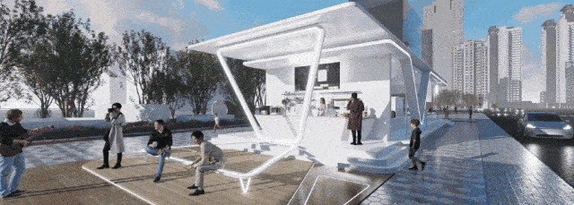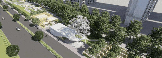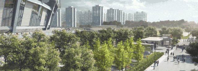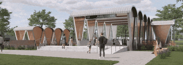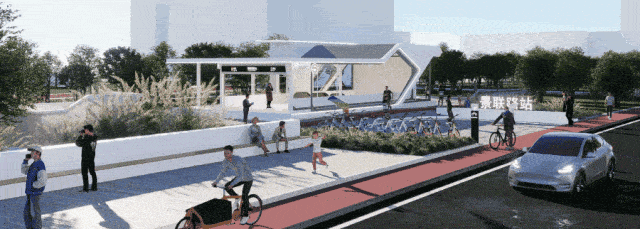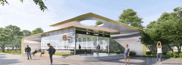 该站紧邻国家级实验室与地区级医疗中心,站点设计融合国家级人工智能实验室之芯片链、区域级医疗中心之基因链,以双链并行为母题,链接建筑、景观、构筑物,创造共融共生的场所感。