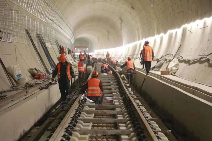 目前,机场联络线轨道2标已累计完成整体道床施工双线56.07公里、交叉渡线道岔1组、单开道岔13组,为机场联络线后续机电安装工程建设打下了坚实的基础。