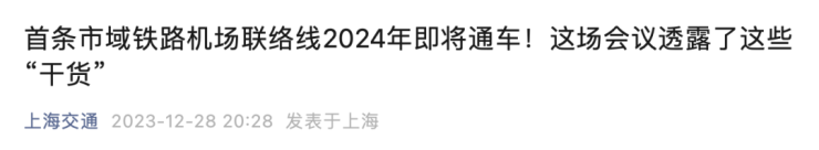 官宣!上海机场联络线2024年将通车!虹桥⇆浦东仅需40分钟左右!