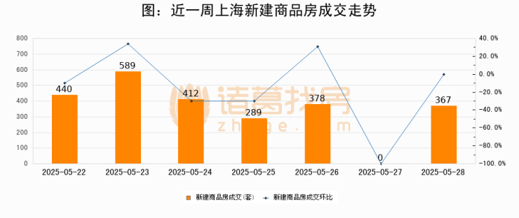 【上海成交日报】05月28日新房成交367套、二手房710套;涨价房源144套