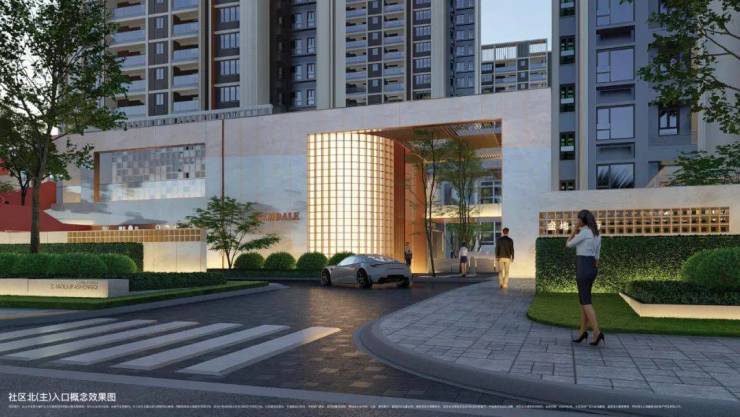 项目建筑则采用金地新格林系风格,以现代简约精致格调为主,区别于市场上常见灰白色为主的冰冷设计,除了玻璃元素的运用,还采用自然木纹铝板,局部石材和米白色、自然色、深浅灰色的涂料搭配,时尚美观,典雅大气,更符合当代青年菁英的审美。