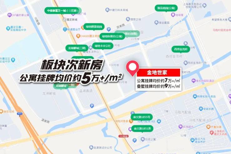 以金地世家为例,整个嘉定新城板块次新房的公寓挂牌均价约5万+/㎡,而金地世家凭着高品质,公寓挂牌价超7万,叠墅挂牌均价更是超9万!