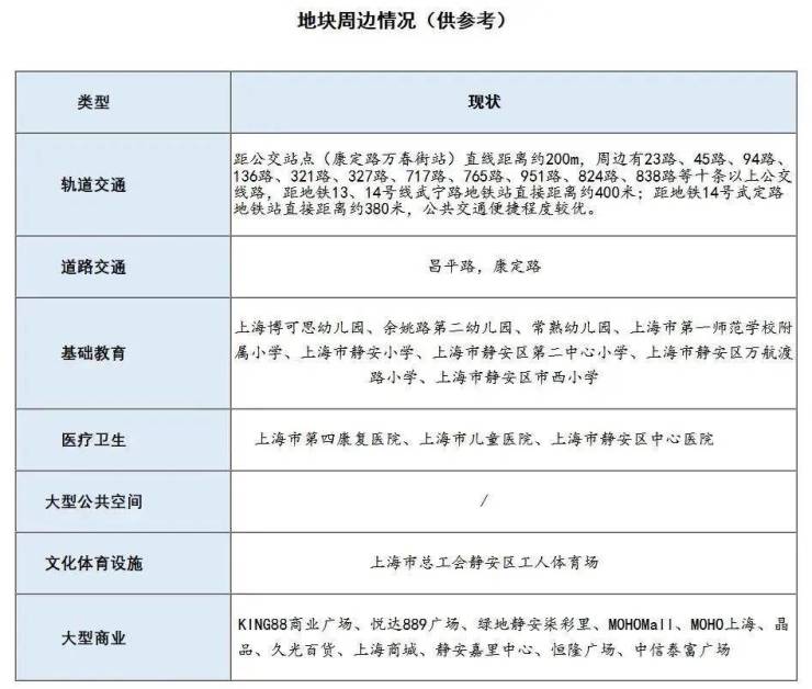 静安区灵石社区N070402单元094a-14地块出让面积3.16公顷,容积率2.95,为住宅+办公混合用地。地块距1号线上海马戏城站500米,近大宁久光中心、大宁国际商业广场。