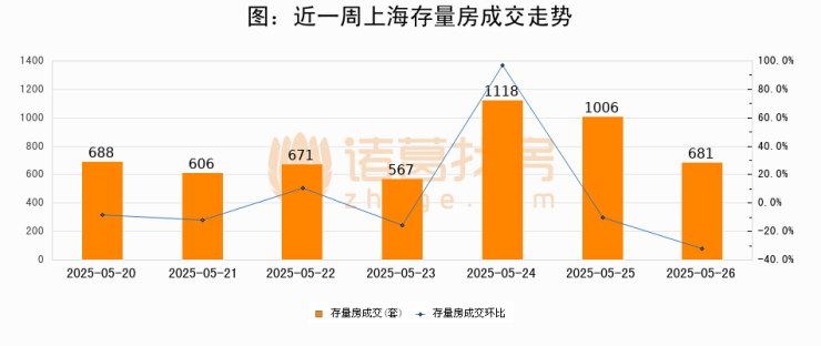【上海成交日报】05月26日二手房681套;涨价房源67套