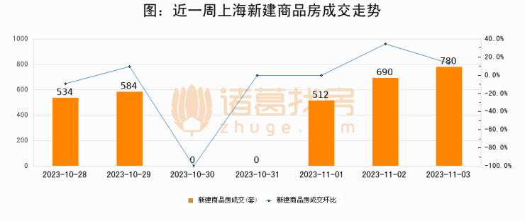 【上海成交日报】11月03日新房成交780套;涨价房源224套