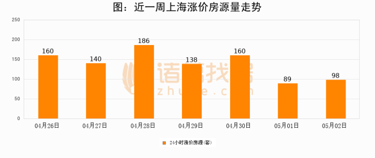 根据诸葛找房数据显示,上海24小时涨价房源量为98套,较05月01日增加9套,环比上涨10.1%。与此同时,涨价房源占比小幅扩大,业主信心有所提升。