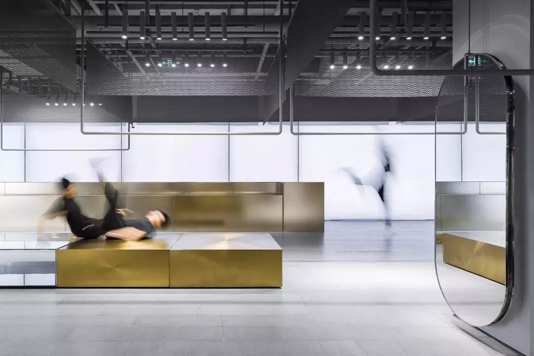 回到建筑表面设计范围的问题,当外观存在既定局限时,将外观内退似乎是神来一笔。除了建立一个灰空间对广场人流进行引流之外,一个功能含糊的空间将是交代品牌立场与态度的较佳场所。