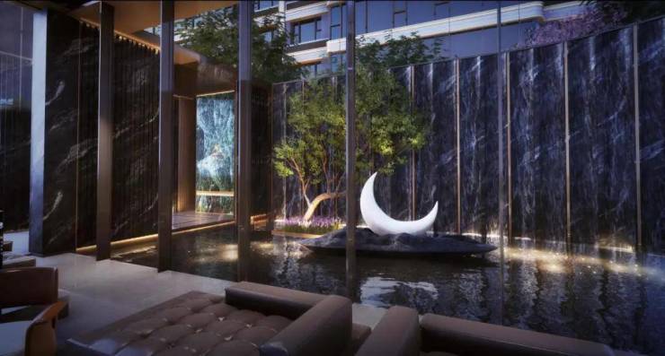 探寻各国森境,萃取自然极少数。龙湖松江·御湖境在臻奢选材上甄选了普拉达绿、安哥拉黑和温德姆灰、安曼灰四大天然奢石,斜飘乌桕、丛生朴树、日本染井吉野樱和榉树等稀贵名木,并经历匠心工艺淬炼汉白玉玄月雕塑,采用石材水刀拼花技术赋予石材奢雅质感,高级定制石纹不锈钢跌水景墙,摹绘如画艺境。