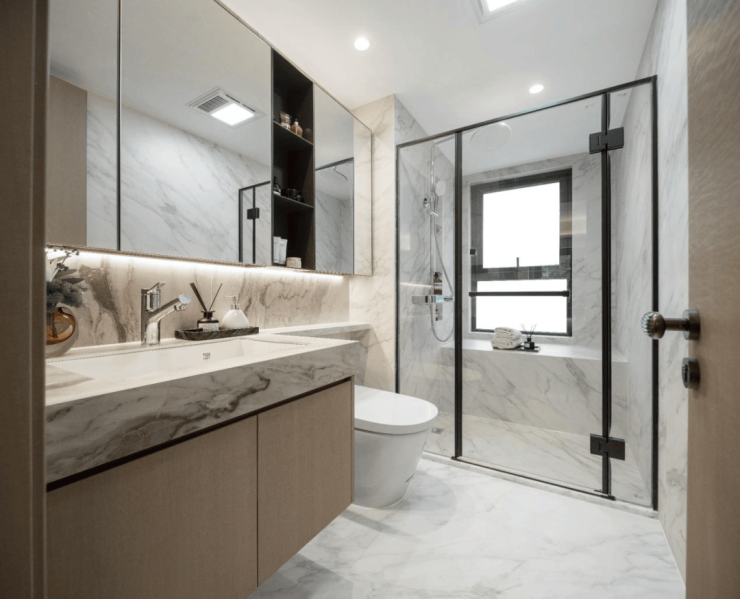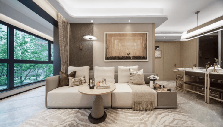 对于秉持“颜值即正义“观念的当代年轻人来说,“青藤里还兼顾了颜值的需要。简约现代风格、全屋一体化设计、大岩板台面、一体式台盆、隐藏式顶部无轨移门、五星酒店级灯光等,从整体到细节,呈现出高颜值现代居所的质感,满足年轻人的美学偏好。