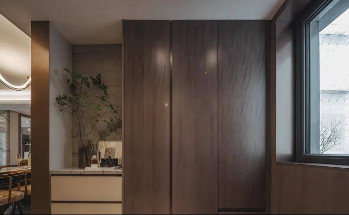 在交付配套之中高阶定制餐柜空间,提供更多收纳空间之外,也增加空间视觉层次。