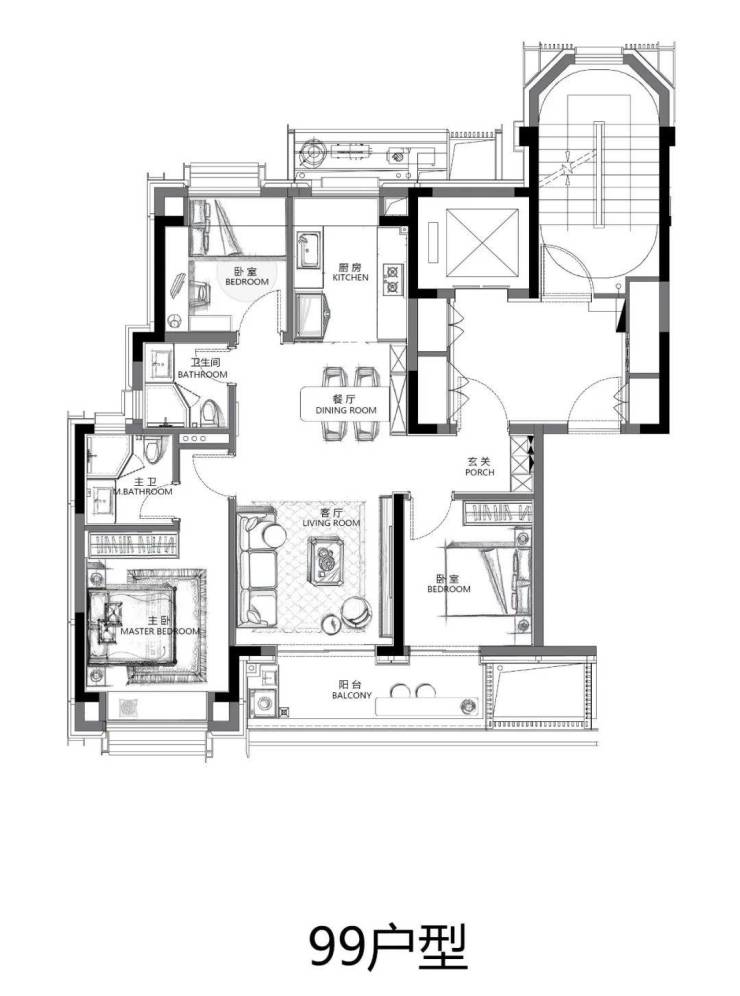 项目主推建面约约99平米三房两厅两卫,约124平米四房两厅两卫,合计122套。房地联动价:9.2万/㎡