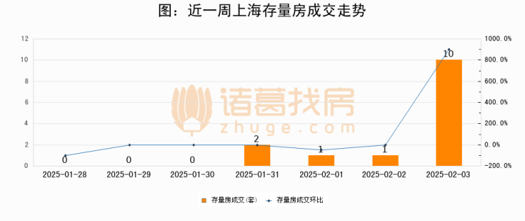 从存量房来看,2025年02月03日上海存量房单日成交10套,比昨日增加9套,环比上涨900%。从近一周存量房成交来看,上海存量房日均成交套数为2套,02月03日单日成交10套,高于近一周平均水平400%。