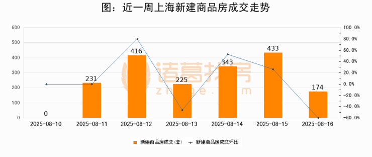 【上海成交日报】08月16日新房成交174套、二手房895套;涨价房源125套