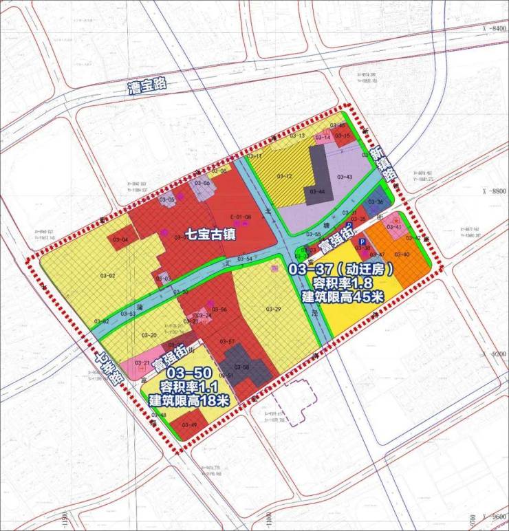 同一街坊内的03-37地块则规划为动迁安置房,用地面积约2.94万平方米,容积率1.8,建筑限高45米。两宗地块的规划落地,将共同推动七宝古镇的城市更新与界面升级。