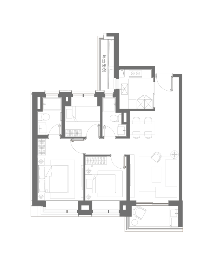 项目一期预计推售4、5、9、10#四幢17F高层,合计340套房源,主力户型为建面约99-103㎡3房。
