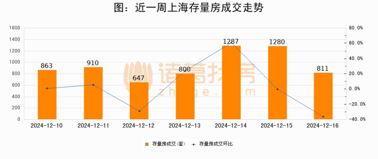 【上海成交日报】12月16日二手房811套;涨价房源222套