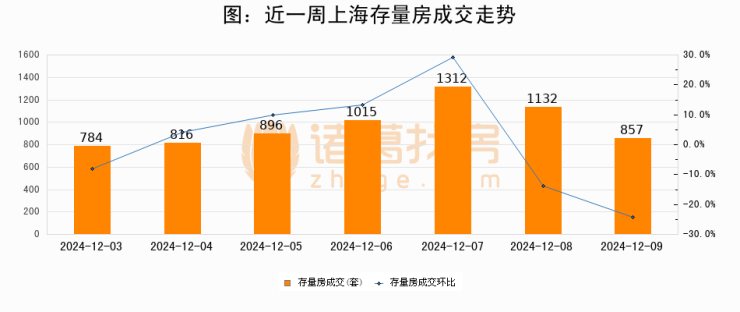 【上海成交日报】12月09日二手房857套;涨价房源402套