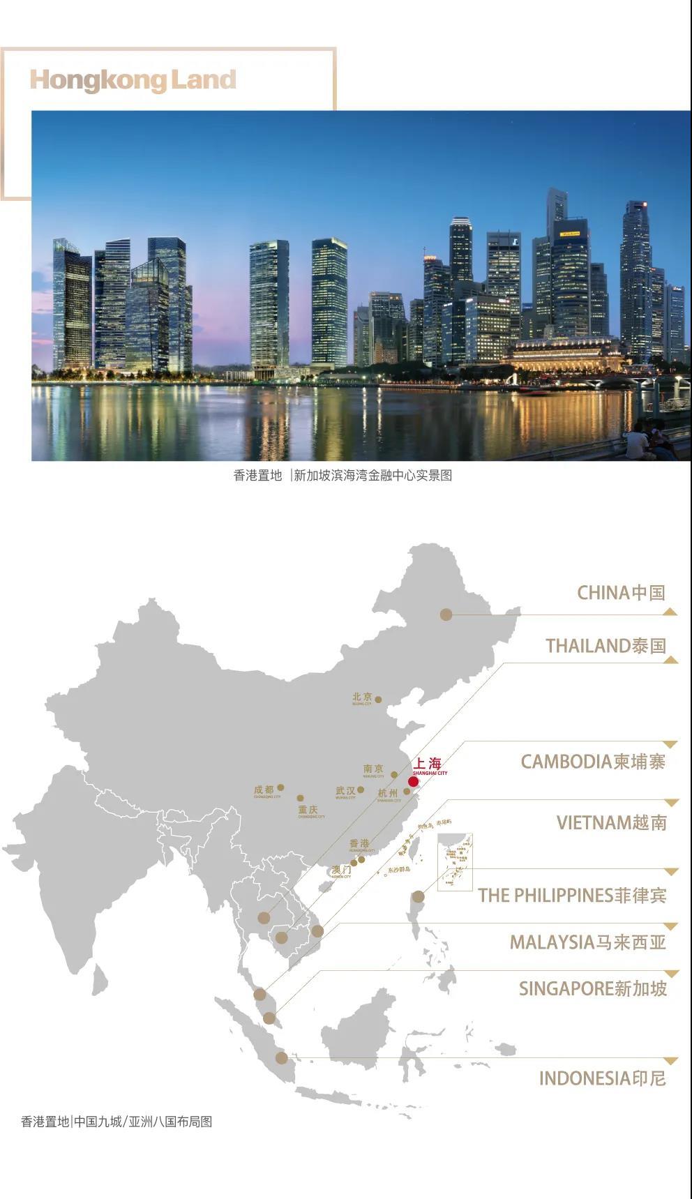从维多利亚港出发,香港置地助力打造了两座世界金融中心——香港中环CBD以及新加坡滨海湾金融中心CBD。至今已履迹亚洲8个国家,在中国香港、澳门及内地的北京、上海、重庆、成都、南京、武汉、杭州核心一二线城市进行重点布局并深耕。