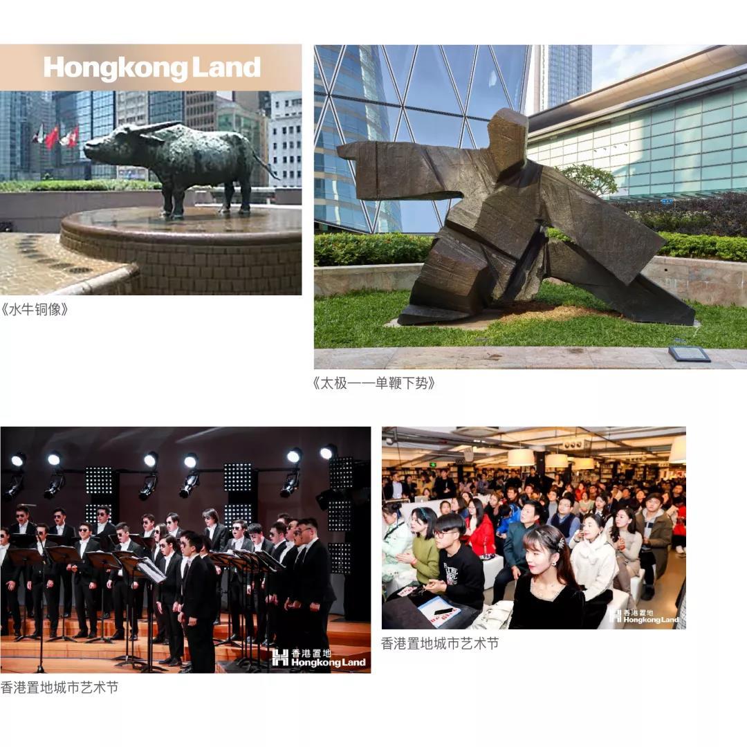 关怀大众与社区,香港置地结合艺术资源打造可持续发展主题展览、公共教育活动等,用心打造有温度的城市生活。从1988年伊莉莎伯•霍龄女爵士为交易广场创作水牛铜像,到设置于北京新城•国际的公众庭院的雕塑《向宁静的破晓驰骋》,再到坐于富临阁的艺术家朱铭个展作品《太极——单鞭下势》,从关注艺术发展,到艺术品收藏,香港置地深刻感知文化与艺术,并无界融合于城市与生活之中,为城市带来细腻且有质感的生活。