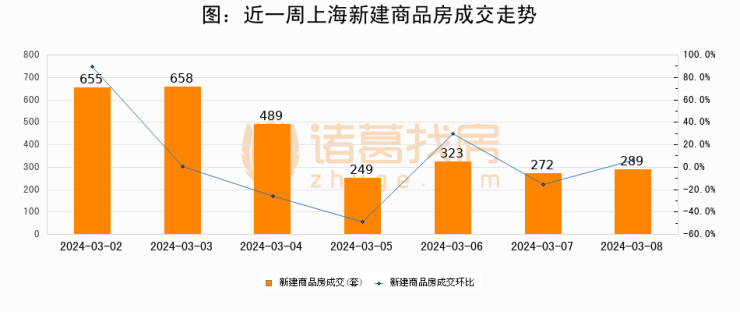 【上海成交日报】03月08日新房成交289套;涨价房源273套