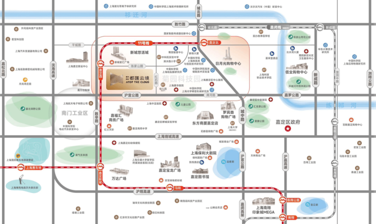 项目周边项目轨交十分便捷,距离11号线嘉定西地铁站仅约400米,步行出行便捷。未来还有嘉闵线直达虹桥枢纽。