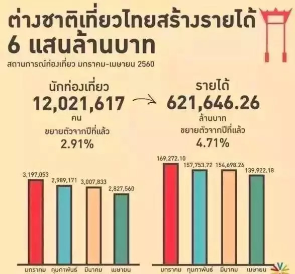 泰国一直被世界游客视为旅行的天堂,仅2017年4月份,泰国就接待了入境的外籍游客 282.7万人次,创收1400亿泰铢(约280亿人民币),比去年同期增长了7.64%。