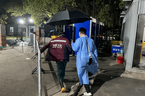经过2个多小时的努力,从搭桥到护送医疗人员出舱,整个工作顺利完成。他们顾不上更换服装,为出舱通行的医护们打伞搀扶。医护人员是这座城市的守护者,而金地智慧服务用行动默默守护着她们。