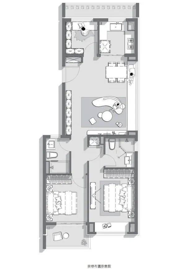 对于当代精致家庭而言,房间的数量可以不在多,但必须要精。 在对年轻家庭的生活需求进行深度研究之后,我们为其设计了双类套房。