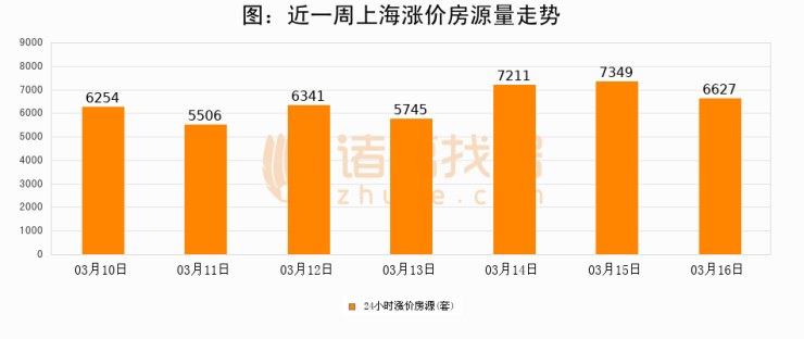 根据诸葛找房数据显示,上海24小时涨价房源量为6627套,较03月15日减少722套,环比下降9.8%。与此同时,涨价房源占比小幅回落,对于购房者来说是一个入市窗口期,购房者可抓住时机入市。