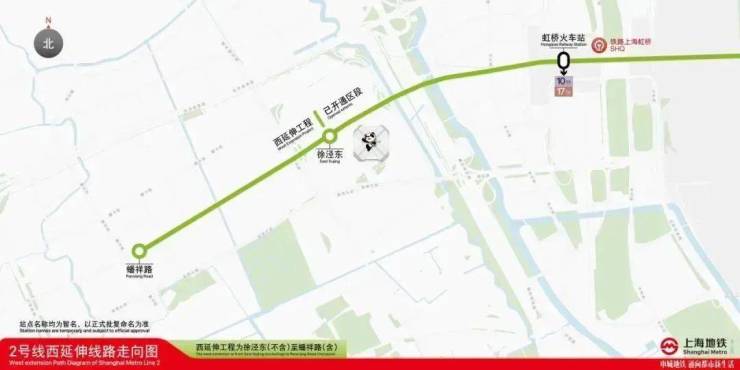 2号线西延伸自2号线徐泾东站向西延伸,设车站1座,线路全长约1.7公里。