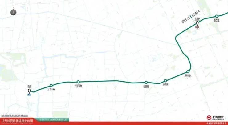 12号线西延伸自12号线七莘路站(不含)向西延伸,途经松江区和闵行区,共6座车站,线路全长约17.27公里。