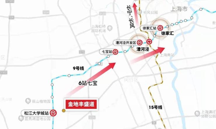 从项目出发,经T2电车直达松江大学城站,实现轨交的无缝衔接。6站七宝,9站漕河泾,12站徐家汇,多线串联,主城新城无界畅达。