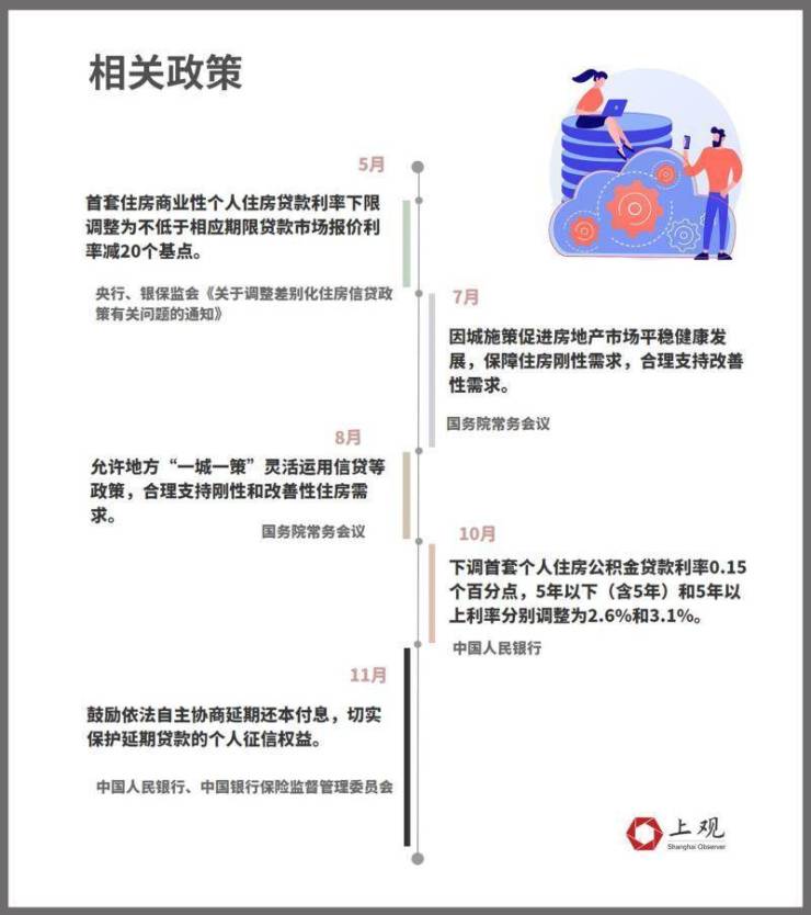 除了市场行情表现较弱,“有迹可循”的政策也助推房贷利率下降。