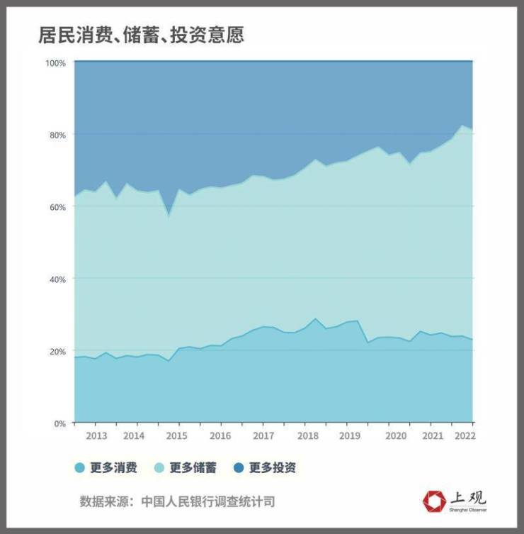 据调查,近三年来,居民的储蓄意愿不断提高,投资意愿明显下降。