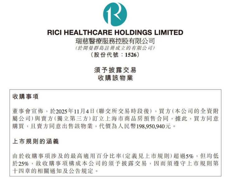11月4日,瑞慈医疗发布公告称,其全资附属公司以约1.99亿元的总价,购入云锦东方三期一套建筑面积约570.06平方米的联排别墅,折合单价高达34.9万元/平方米,较该项目29.8万元/平方米的备案均价高出约17%。该房源位于小区“楼王”位置,总价与单价均创下区域新高。