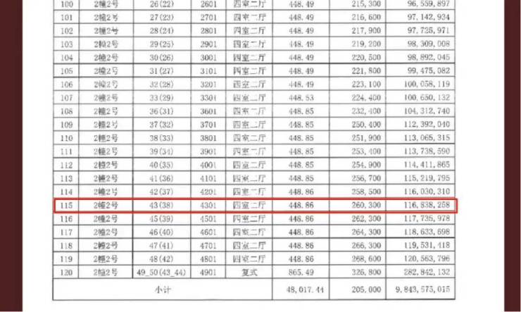郭孔华为马来西亚首富郭鹤年之子,现年46岁。根据项目二期“一房一价表”显示,该房源为2幢2号楼4301室,建筑面积约448.86平方米,单价约为26.03万元/平方米。