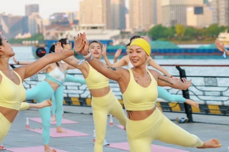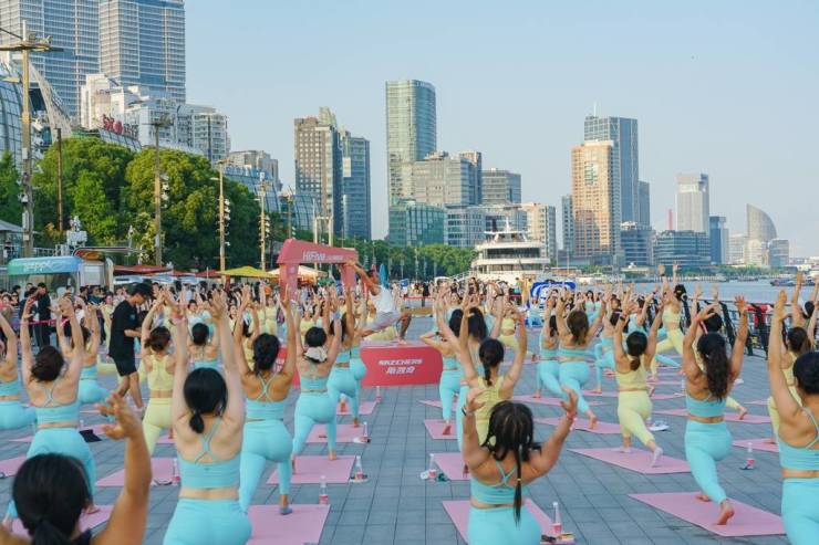 为提高大众对瑜伽诸多益处的认识,联合国将6月21日定为国际瑜伽日。在这一节日来临之际,斯凯奇特邀知名火箭流瑜伽教练Andrew,IPTC普拉提认证教练、音乐拳击教练Lita,定制瑜伽与搏击融合课程,邀请大家和身边的伙伴Hi Five击掌,一同上「场」。同时,斯凯奇还别出心裁地将品牌发源地加州曼哈顿的落日海滩搬到黄浦江畔,以魔都三件套为背景,打造限时美式氛围打卡地。伴随一线黄浦江景与唯美落日黄昏,百名参与者首先在Andrew的引领下,感受体式间行云流水般的流畅转换,在每一次深吸与轻吐之间,到瑜伽的世界里探寻身心合一的平衡与自由。再跟随Lita于音乐律动中尽情挥洒汗水,在融入拳法动作和芭蕾元素的新颖体验中,找寻属于自己的节奏与力量。