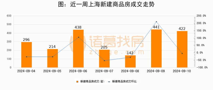 【上海成交日报】09月10日新房成交422套;涨价房源70套
