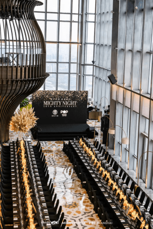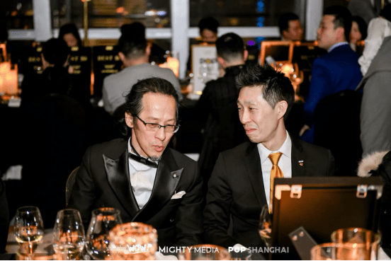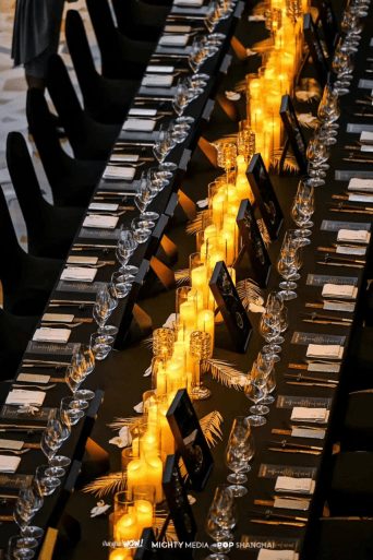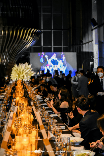 2023年2月23日,Shanghai WOW! BEST 50 & POP SHANGHAI POP 100双奖颁奖盛典在耗资上亿打造的云巅之境——甬府北外滩大师集合店隆重举办。此次活动不仅是一场颁奖盛宴,更是Shanghai WOW! BEST 50和POP 100的十周年庆典。MIGHTY MEDIA CEO Vivienne Ye,CCO Bobby Weng 以及200多位获奖商家盛装出席,共襄盛举,于十年磨一剑的甬府惊艳全城的殿堂级空间内,觥筹交错宾主尽欢,尽显风雅名士格调。活动现场黑金主色调的环境及花艺布置,传达的是“双十年华,向光而行”的隆重优雅气质。名伶礼乐、笙歌管弦,尽显奢华风韵。