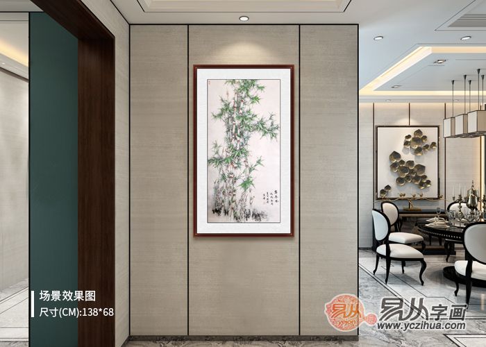 一幅绿竹图在推开门的一瞬跳入眼中,不仅让人眼前一亮,也是寓意平安、节节高,人生事业步步高升。