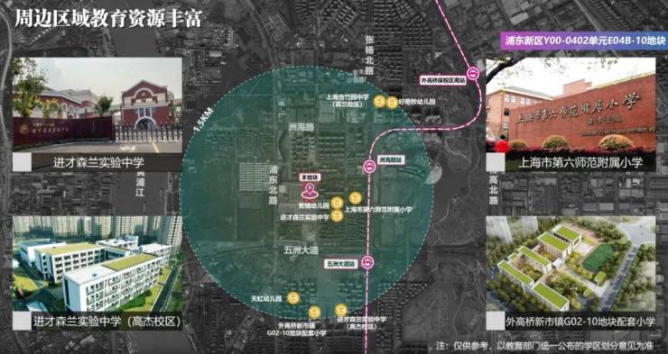 地块西侧规划为高中用地,附近已有六师附小、进才森兰中学等学校。据悉,该地块附近的高宜家园、星耀名邸(招商璀璨公馆)、森兰壹公馆等小区均对口进才森兰中学繁锦校区(学区信息仅供参考,不作为承诺)。