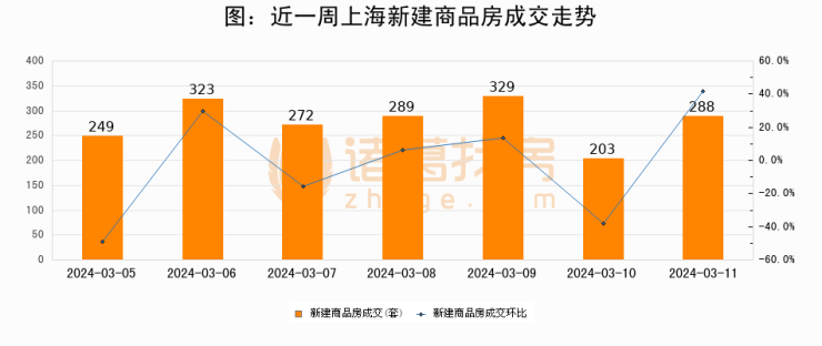 【上海成交日报】03月11日新房成交288套;涨价房源133套