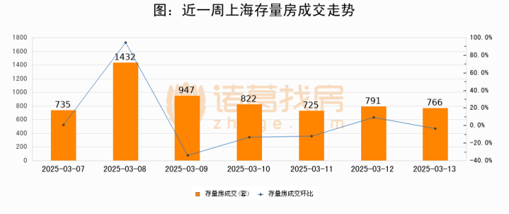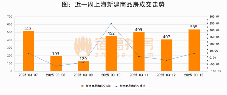 【上海成交日报】03月13日新房成交535套、二手房766套;涨价房源5745套