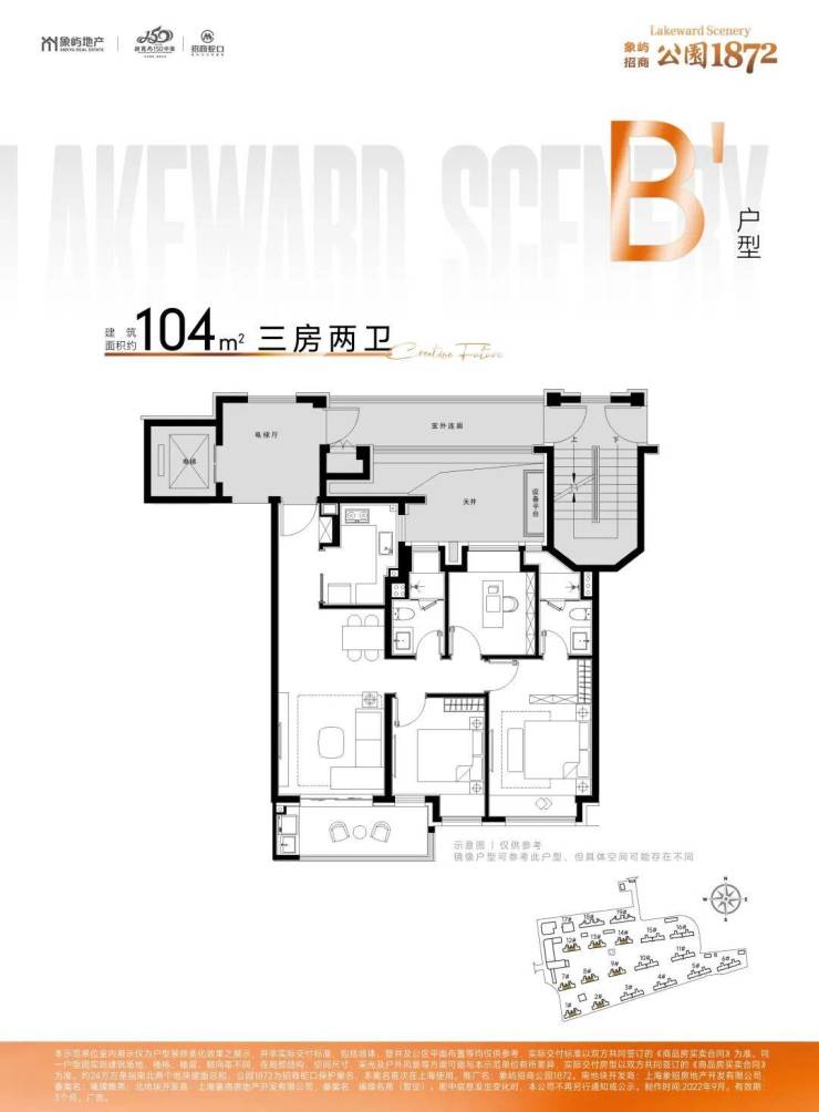 象屿招商·公园1872项目三期约104-132㎡3-4房,共192套房源即将认购,户型如下: