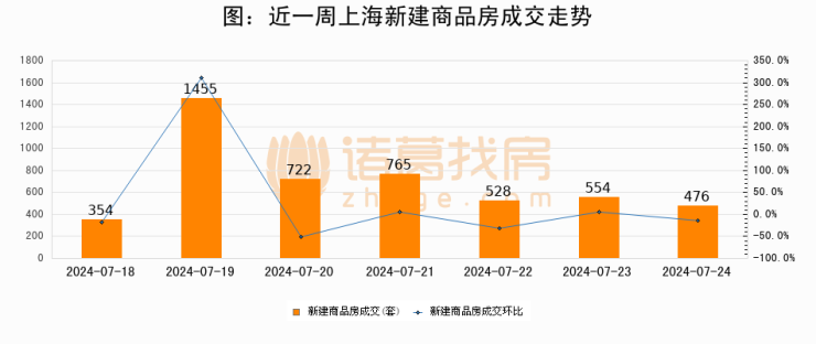 【上海成交日报】07月24日新房成交476套;涨价房源180套