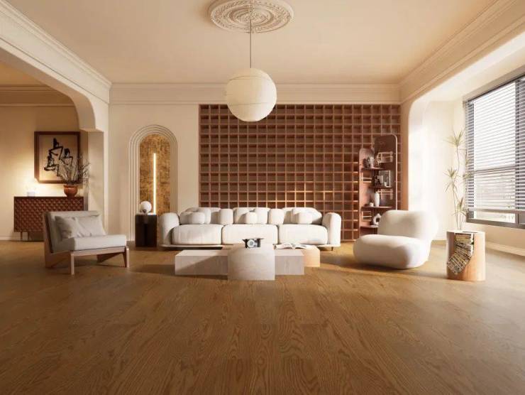 439元/㎡的超宽橡木地板,比常规尺寸宽1/4,有效平衡大空间的视效美感。相对市场上存在的遮盖工艺徒有其表,久盛精选高等级板材,尊重自然之美,不遮不掩,每一片地板表里如一。