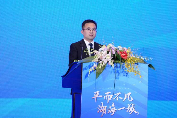 澎湃新闻副总编辑、浙江省浙商研究会执行会长、浙江省企业家协会副会长胡宏伟做《长三角一体化坐标上平湖黄金机会》主题报告。