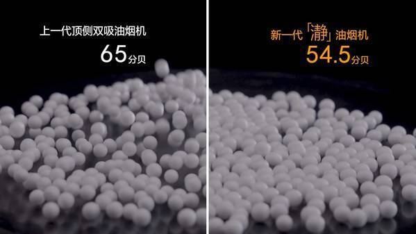 在风量相当的前提下,上一代顶侧双吸油烟机较大档位噪声为65.0dB(A),「瀞」油烟机仅为54.5dB(A),降噪效果非常明显。为了形象的体现噪音对耳膜的不良影响,中国家用电器研究院还做了一个有趣的小球实验,让噪音看得见。噪声强弱的差异通过小球的振幅的差距明显的展现出来。